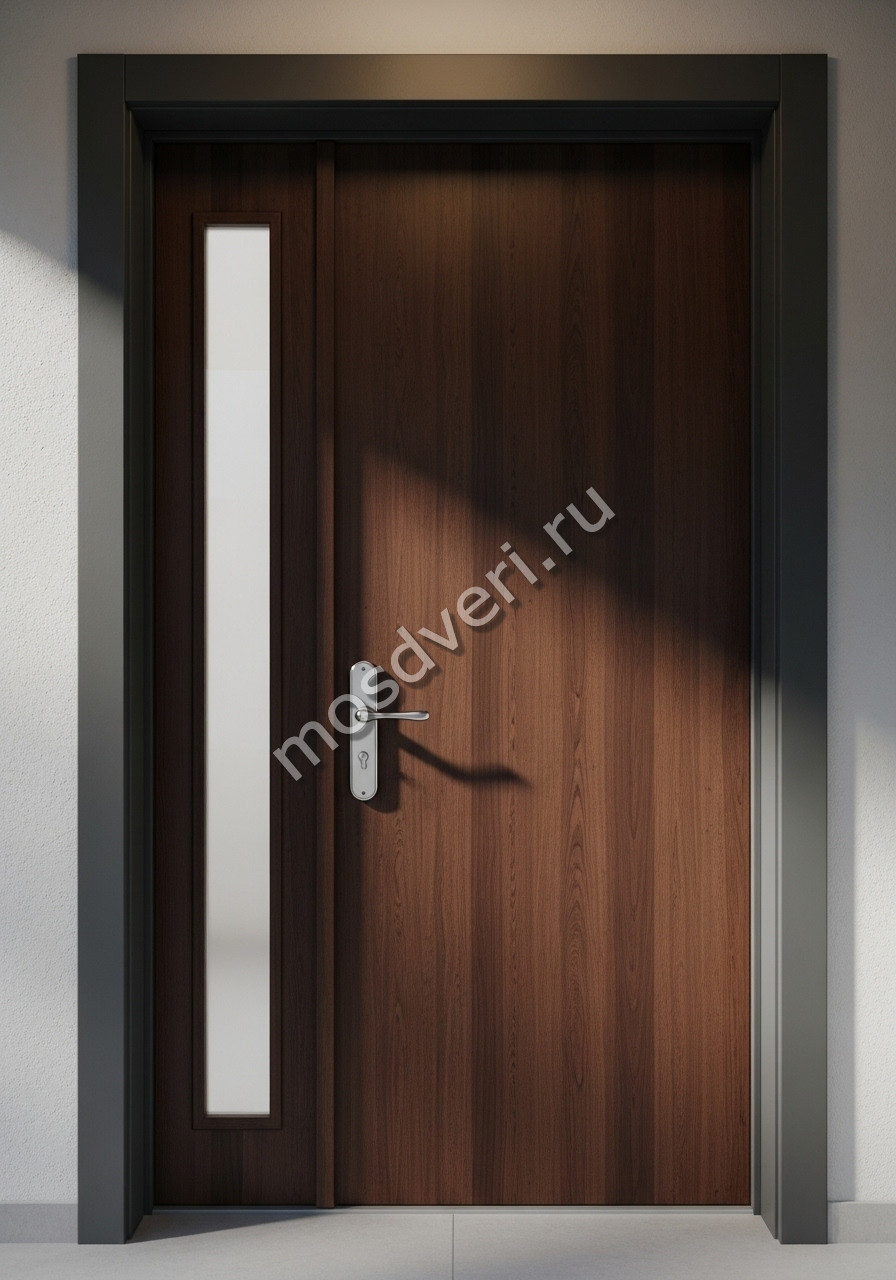 Современная входная дверь для загородного дома коричневая со стеклянной вставкой